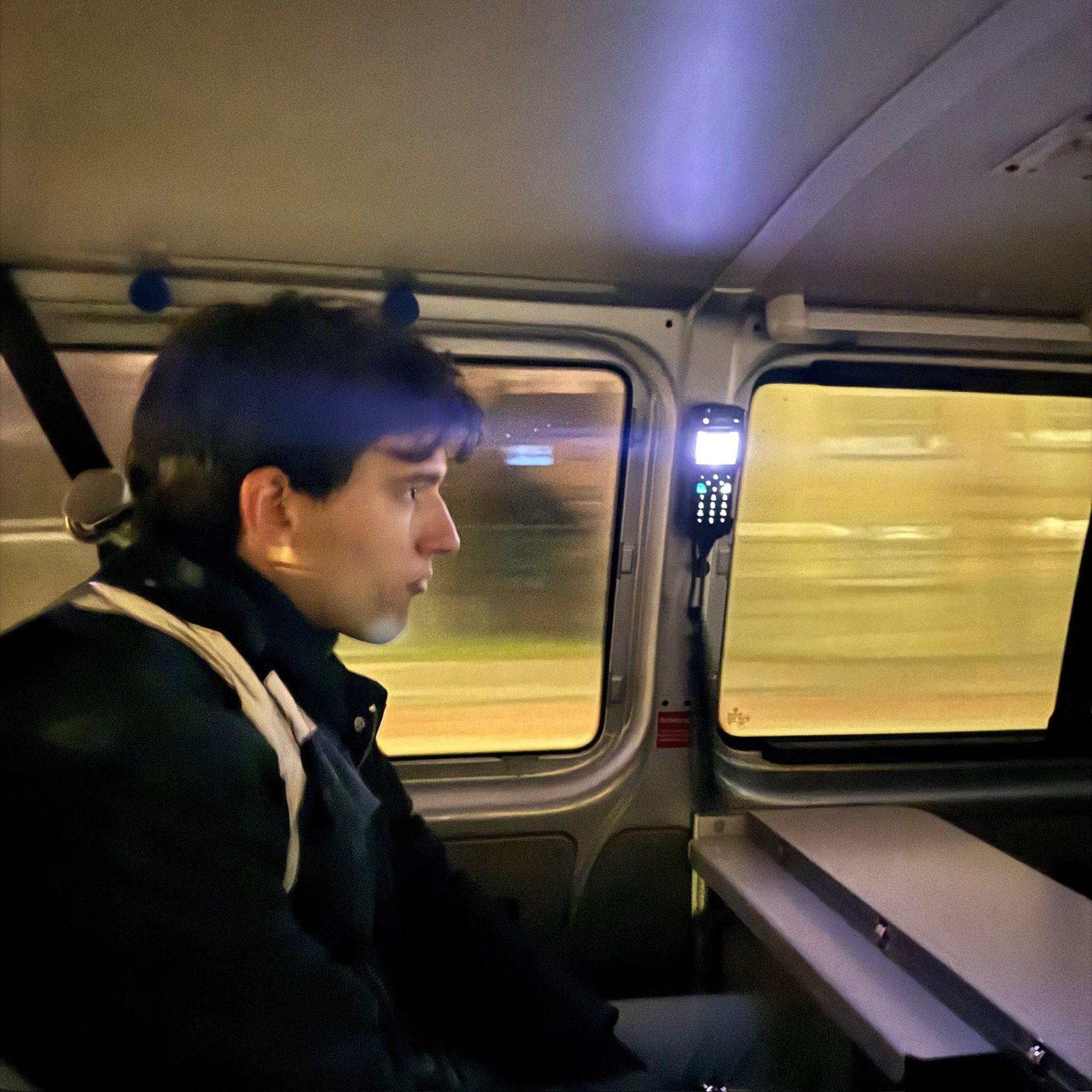 Erneut die Polizeiinspektion Hof (siehe Begegnung Nr. 8): Schichtbeginn ist um 19 Uhr 30. Vorne im Wagen zwei Polizeibeamte. Die Namen? Soll ich nicht nennen. Ebensowenig, wie ich die Gesichter zeigen soll. Die Bedrohungslage für Sicherheitskräfte hat sich in den letzten Jahren verschärft. Auch deshalb hat die bayerische Staatsregierung die Mittel für die Polizei stark erhöht.